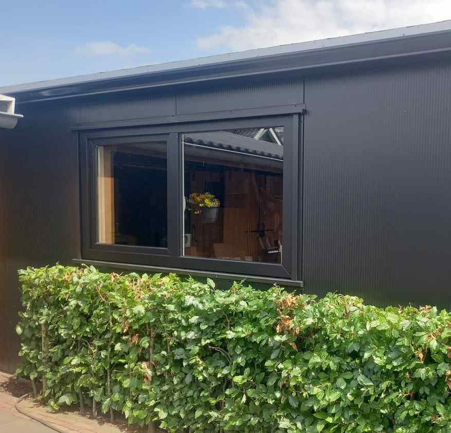 Kunststof raam 2.000x1.000mm Met een dubbel raam van 2x1m heeft u een zeer ruime bron van lichtinval en uitzicht. Daarnaast is het mogelijk om één of beide zijden een draai/kiepfunctie te geven. Hiermee creëert u een goede bron van frisse lucht. Verder is dit raam voorzien van een stevige kunststof omlijsting, dat robuust en onderhoudsvrij is. Tot slot is dit raam voorzien van HR++ glas, waardoor deze goed isolerend werkt. Meer privacy gewenst? U kunt dit raam ook laten uitvoeren met melkglas! Inbegrepen - Raam - Hulpstaal (Bij combi met aanschaf loods) - Stelkozijn - Afwerkprofielen buitenzijde