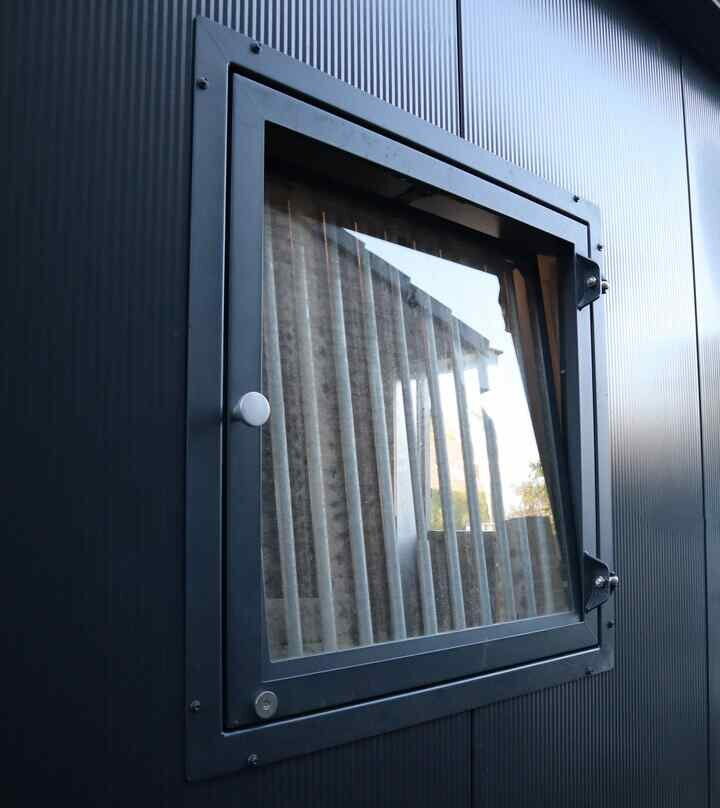 Robuust stalraam voorzien van tralies. Op kleur en draai/kiep functie is optioneel.